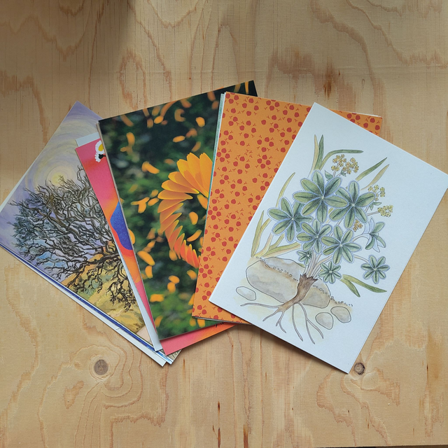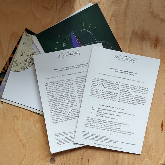 16 Pflanzentexte, jeweils als A5 Karte, inkl. visuelle Interpretation von verschiedenen Künstler*innen