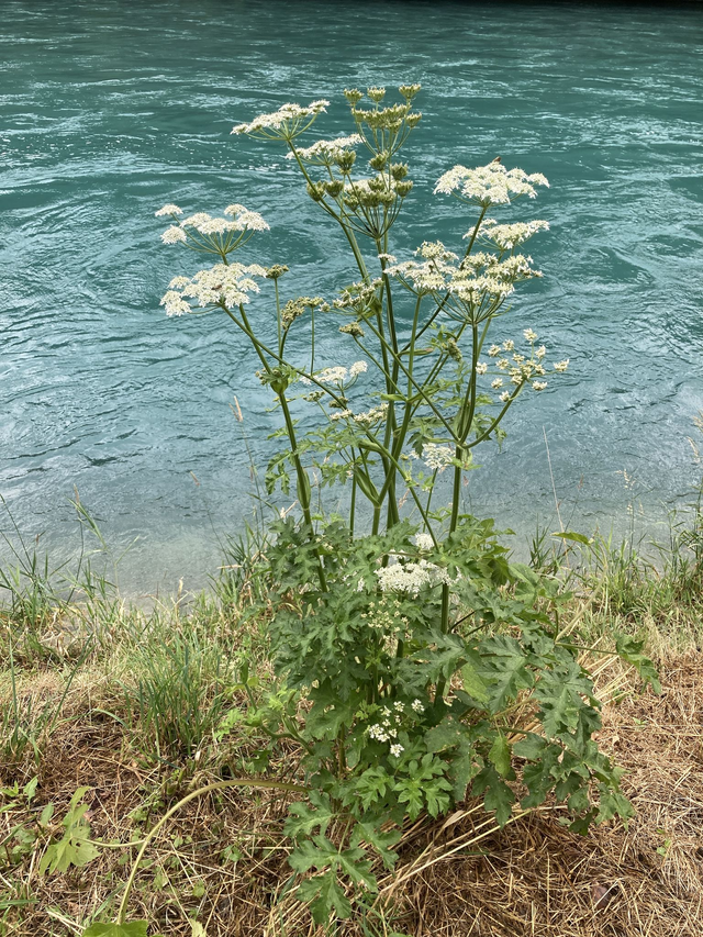 Der Wiesen Bärenklau (Heracleum sphondylium) ist eine hiesige Wildpflanze, welche viele Insekten anzieht. Die Pflanze ist essbar, enthält dennoch eine Aura von Giftigkeit, da der Saft auf der Haut phototoxisch wirken kann.